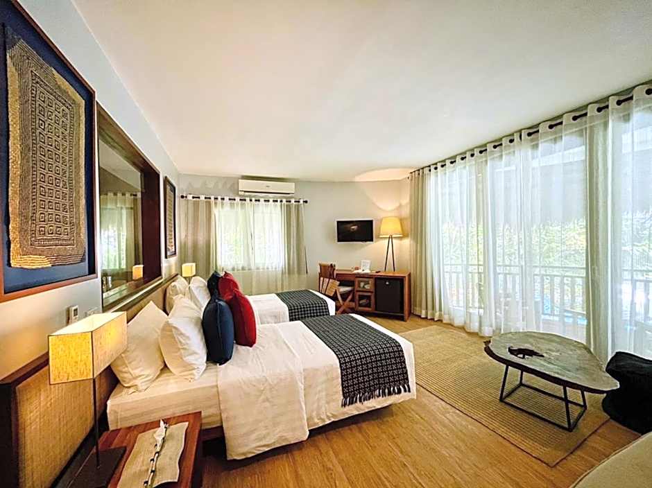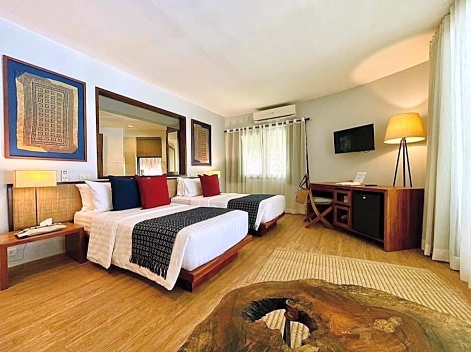 Two Deluxe Ocean View options invite restful nights: Deluxe with 2 Twin beds at 538 square feet and Deluxe with a King bed at 646 square feet. Both are non-smoking, accommodate 2 adults and 1 child, and feature (as named) ocean-view charm for a memorable island escape.